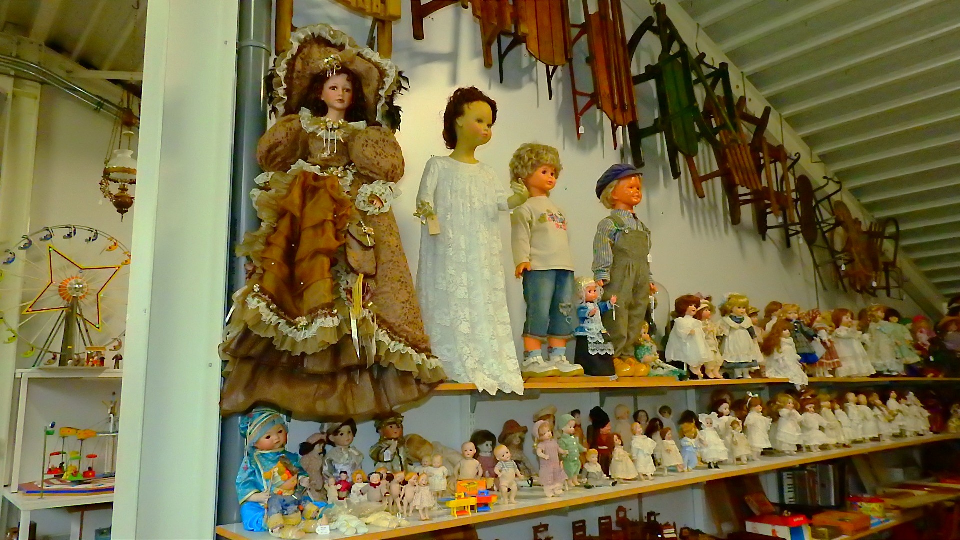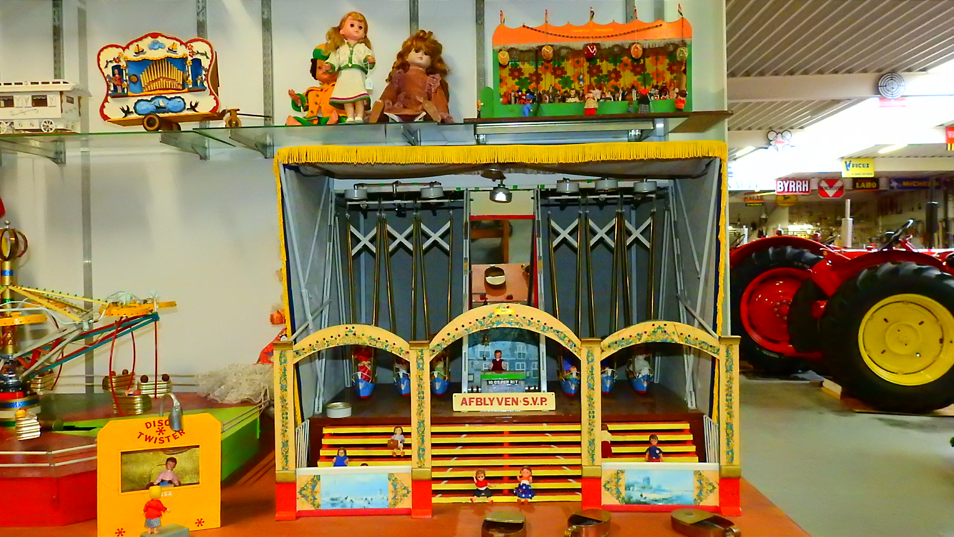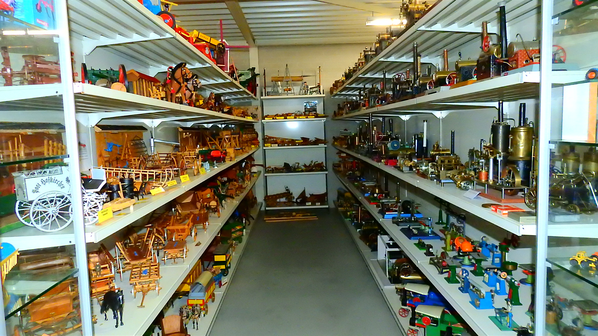 En alles niet een klein beetje maar rijen van elk voorwerp, van tractors, brommers, scooters, fietsen, wasmachines en centrifuges, gas fornuizen, poppen, en van elk beroep was er daar wel wat te vinden, te veel om op te noemen.