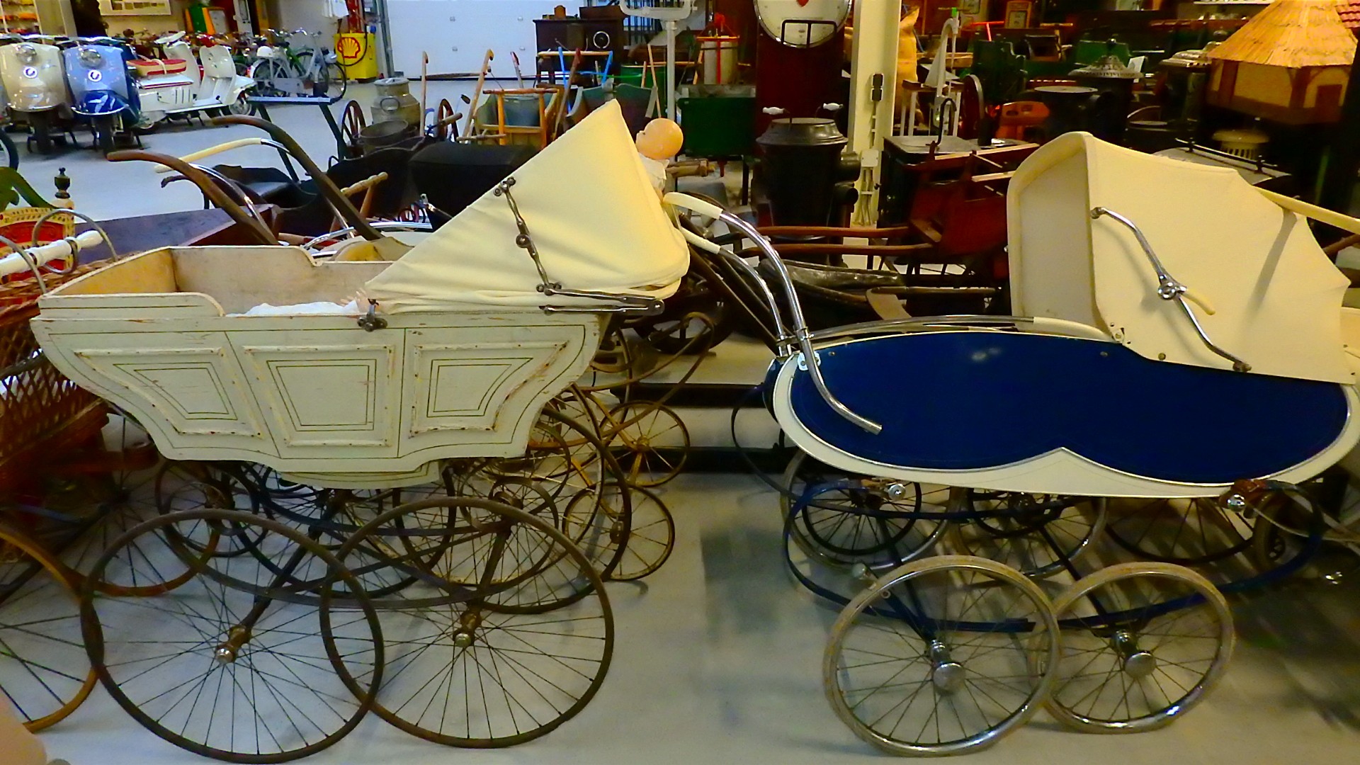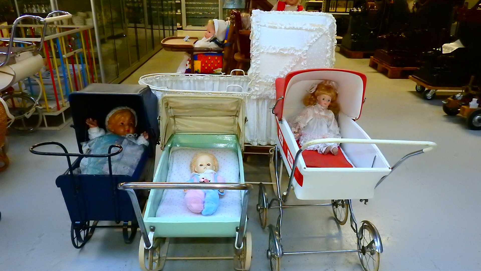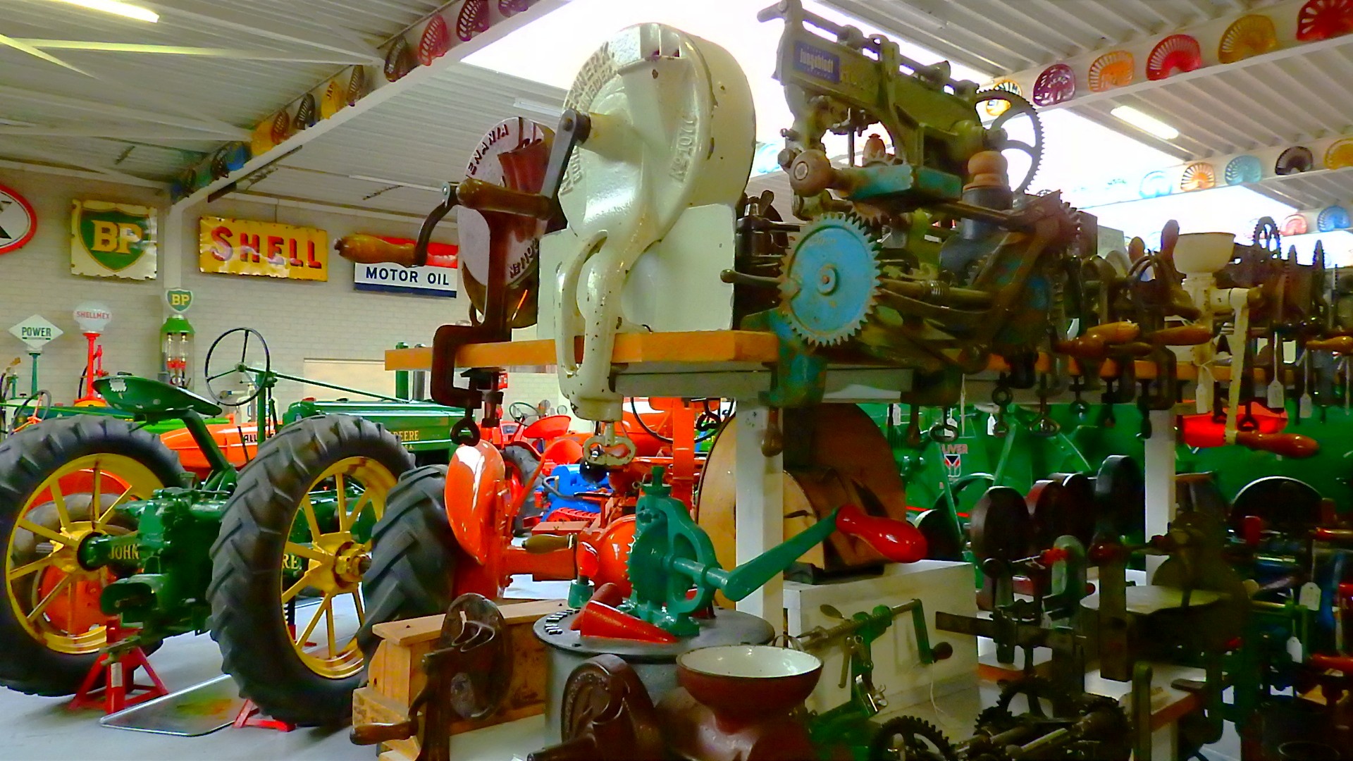 En alles niet een klein beetje maar rijen van elk voorwerp, van tractors, brommers, scooters, fietsen, wasmachines en centrifuges, gas fornuizen, poppen, en van elk beroep was er daar wel wat te vinden, te veel om op te noemen.